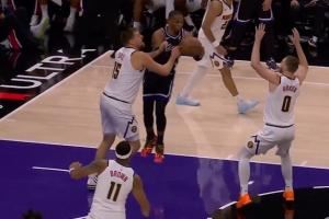 1. 威少跳起传球砸到布劳恩脚背 约基奇&穆雷等四人齐齐摊手