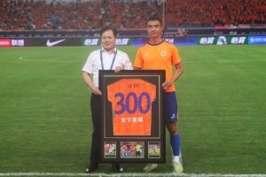 队员刘彬彬达成了他在山东泰山队生涯300场比赛的里程碑,山东泰山足球俱乐部总经理周培建在赛前为刘彬彬颁发了300场纪念球衣。刘彬彬是出自泰山青训的优秀球员,祝贺刘彬彬!